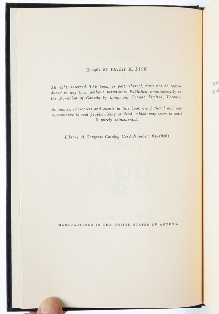 The Man In The High Castle By Philip K Dick First Edition 1962 From Whitmore Rare Books Sku 4740